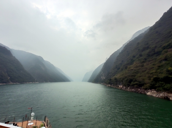 11:00—11:30 游輪經過瞿塘峽,您可在六樓陽光甲板傾聽導游現場解說,親身感受“夔門天下雄”的磅礴氣勢(新版十元人民幣背面的圖案)。