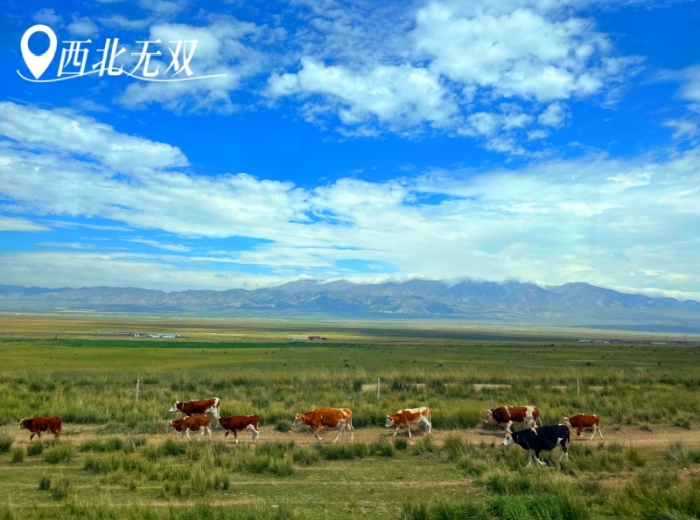 (車覽)祁連山草原以其廣袤的草原、碧綠的草地和四周的雪山而聞名,被譽為“東方小瑞士”,中國最美的六大草原之一,每年7月和8月,草原上碧波萬頃,馬、牛、羊群點綴其中,與銀裝素裹的祁連山相映成趣,構成了一幅絕美的畫卷。