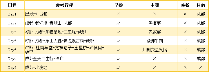 【用餐】成都晚餐不統一安排,請提前備好,或自行安排。