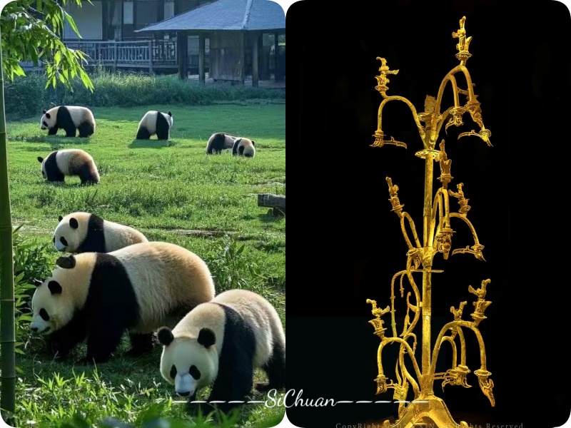 ★★★A:成都-熊貓基地-三星堆-成都 餐:早中 宿:成都早餐后統一集合乘車前往游覽【熊貓基地2h,不含語音講解器10元/人,觀光車30元/人】,熊貓基地常年飼養有大熊貓、小熊貓、黑頸鶴、白鸛和白天鵝、黑天鵝、雁、鴛鴦及孔雀等動物。在由 68科 300 多種高等植物所構成的基地人工生態植被內棲息著野生鳥類 29 科 90 多種。基地還為游客創造出現代的交互式的學習體驗環境。通過這些學習型展區,將逐步了解基地研究工作的深度,以及在這個由人類危險主宰的世界里我們為幫助瀕危物種的生存所作出的承諾和付出的努力。