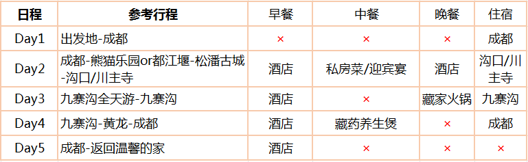 門票:都江堰or熊貓樂園、九寨溝、黃龍