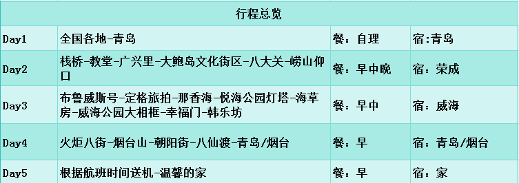 用餐:早餐/青島老字號特色美食/嶗山茶宴