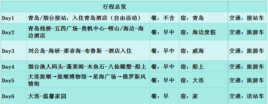 4、區間車:當地空調旅游巴士,保證一人一座。煙臺-大連船票 6-8 人間,如不成團十人以下司機兼導游!