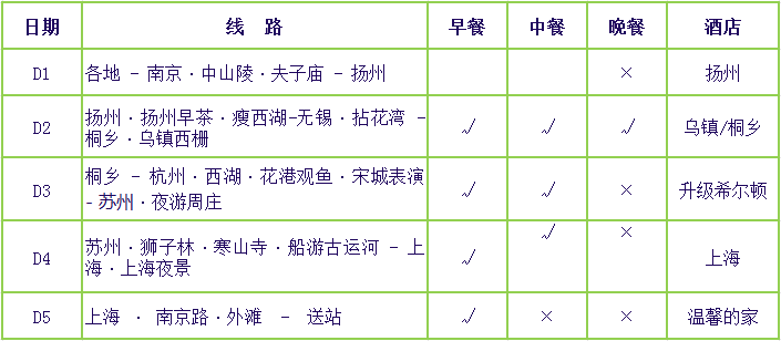 宜昌到華東五市(揚州+南京+杭州+蘇州+上海)具體行程