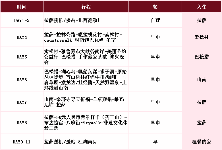用車:正規西藏旅游車,根據人數安排車輛,7座-15座(布宮當天不含車)