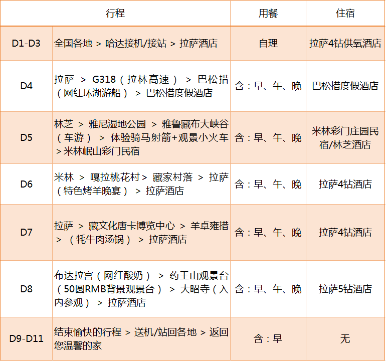 酒店說明:拉薩四鉆酒店+首晚有氧酒店+升級(jí)1晚五鉆圣地天堂洲際酒店+林芝1晚喜馬拉雅度假酒店+1晚特色莊園時(shí)間標(biāo)準(zhǔn):行程中所標(biāo)注游覽順序,因天氣、路況等因素導(dǎo)游會(huì)根據(jù)實(shí)際情況作出適當(dāng)調(diào)整;