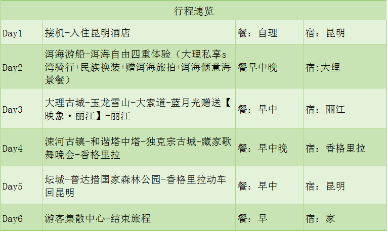 宜昌到云南昆明+大理+麗江+香格里拉6日具體行程