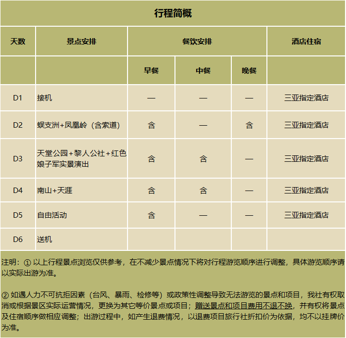 保險:含海南旅行社責任險;建議游客提前自行購買旅游人身意外險。