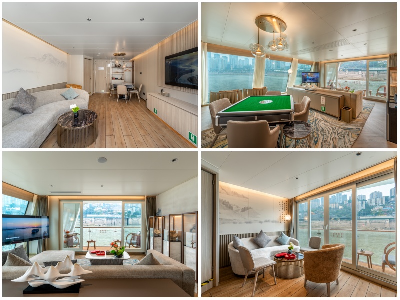 既是穿梭于山水之間的交通工具,更是被山水環(huán)繞的娛樂空間,劇院、餐吧、觀景吧、酒吧、購物中心、兒童游樂區(qū)、VIP包房......一應(yīng)俱全。