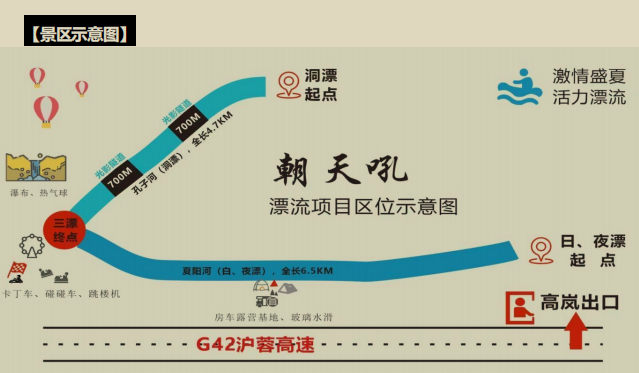 以上時間為參考時間 ,以當日出行為準。如遇節(jié)假日和旅游高峰期 ,出發(fā)時間、游覽時間和返程時間以實際情況為準。因漂流是風險性項目,受季節(jié)和天氣限制,如遇河道漲水、干旱枯水、暴雨等特殊情況,景區(qū)會禁漂。