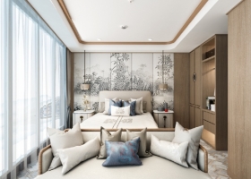 總統(tǒng)套房:各類新型材料的組織運(yùn)用,體現(xiàn)了高速發(fā)展時(shí)代背景下的時(shí)代特質(zhì);溫暖自然,簡(jiǎn)約明快的中性空間基調(diào)賦予了室內(nèi)空間的自然人文關(guān)懷情調(diào)。合時(shí)宜的陳設(shè)布置,體現(xiàn)了當(dāng)代休息區(qū)的自由舒適的生活理念。