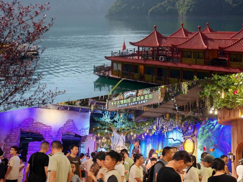 多媒體光影秀《三峽奇緣》、VR 體驗項目《太虛幻境》(自費40元/人)、《長江萬里圖》電影館、裸眼 3D《夢幻空間》《太空傳奇》等互動項目上天入地、穿越古今。沉浸式體驗項目《鄭和下西洋》、聊齋驚魂鬼屋、恐怖研究院等,光怪陸離、驚心動魄。整個景區建有風雨連廊,不懼日曬雨淋,全天候輕松暢玩,老少同樂,晴雨皆宜。