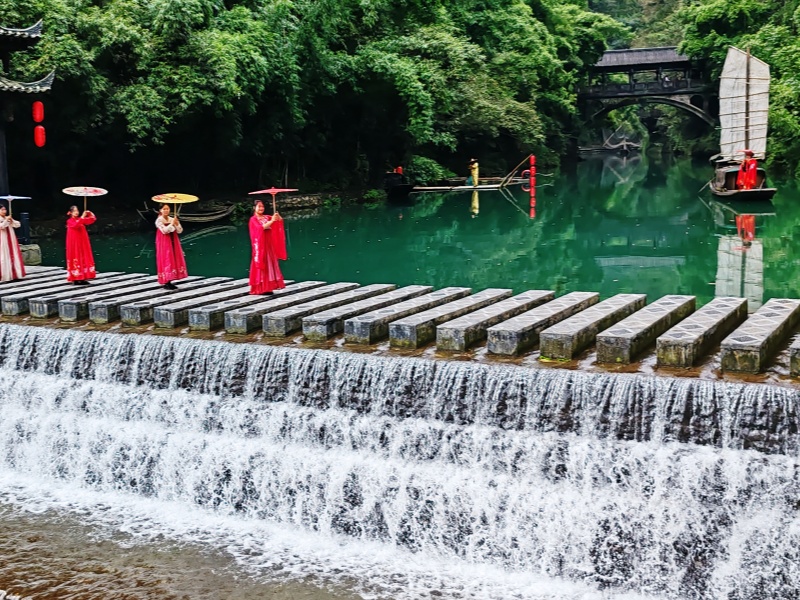 14:00- 16:30:下午游覽龍津溪(龍溪橋、鵲橋、婚嫁樓表演、峽江號子、 迎賓表演)。