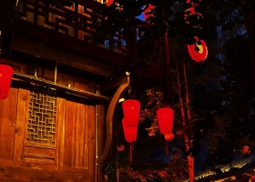 20:15- 20:20:經(jīng)過擺手舞臺前往風(fēng)雨橋,在土司山寨前看