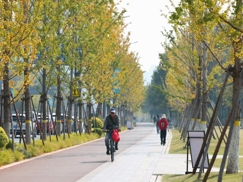 11月6日,立冬節氣即將到來,濱江公園里,銀杏樹樹葉開始變黃,陽光穿透樹葉,呈現出美麗的金色景色。市林木種苗推廣中心高級工程師魯曉雄說,銀杏葉通常先從邊緣開始泛黃,隨后逐漸變為全黃。研究顯示,這一變化過程與花色素苷的積累密切相關。隨著天氣變化,銀杏葉為了適應環境、增強抗凍能力,植物體內的SS成分促進了花色素苷的合成,使得樹葉逐漸變黃。可見,氣溫的變化是銀杏葉變黃的關鍵因素之一,它們啟動了“防凍機制”。(記者林瀟 攝)