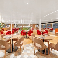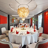 餐飲設施:2、3樓的環球餐廳,可自由組合卡座餐桌,設開放式明檔;4樓的帕沃利昂VIP餐廳,為套房乘客專屬,裝飾豪華,菜品豐富。